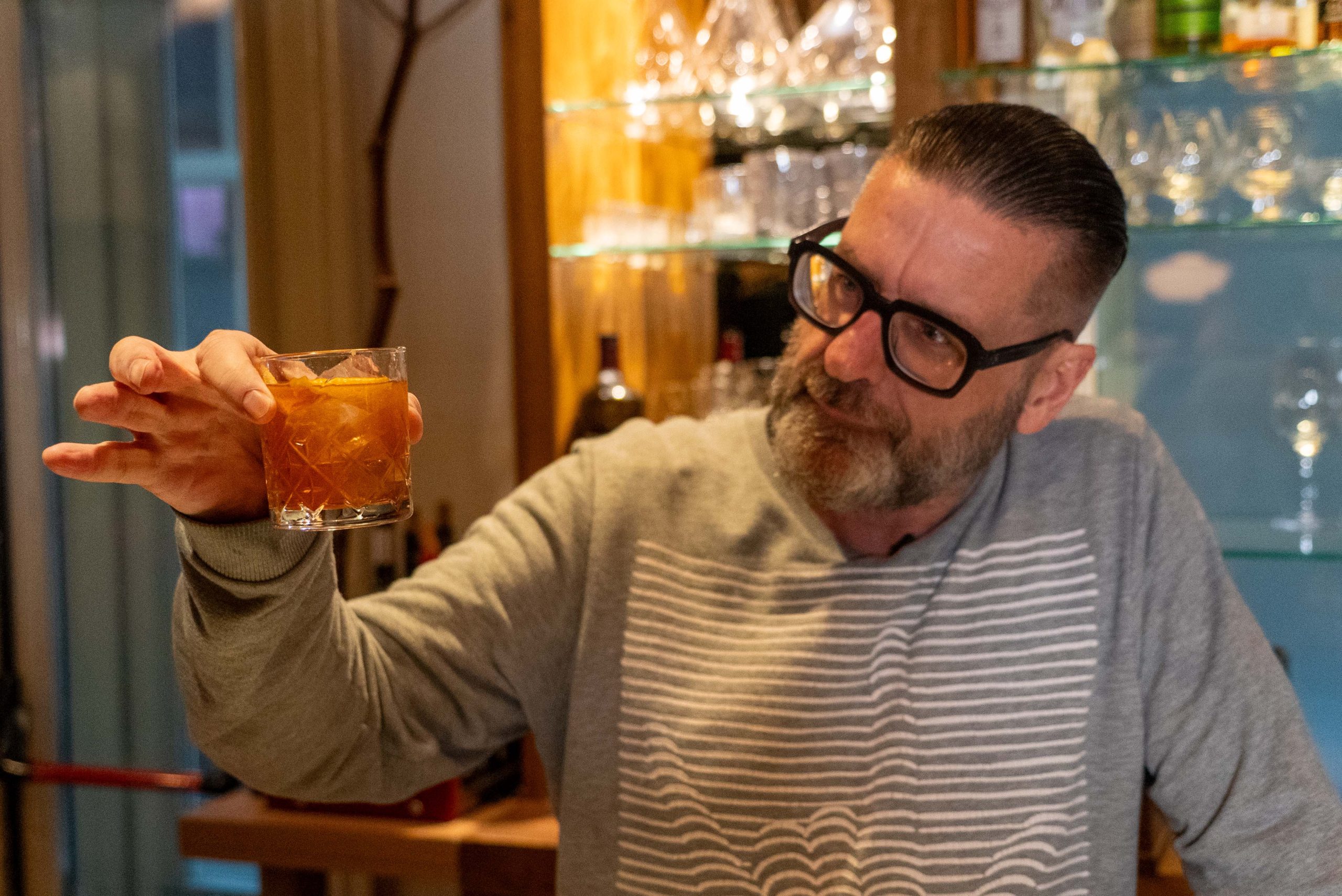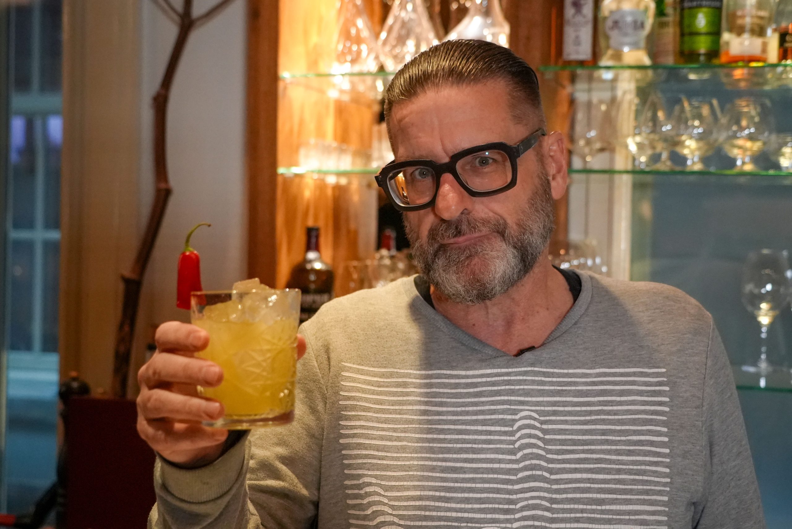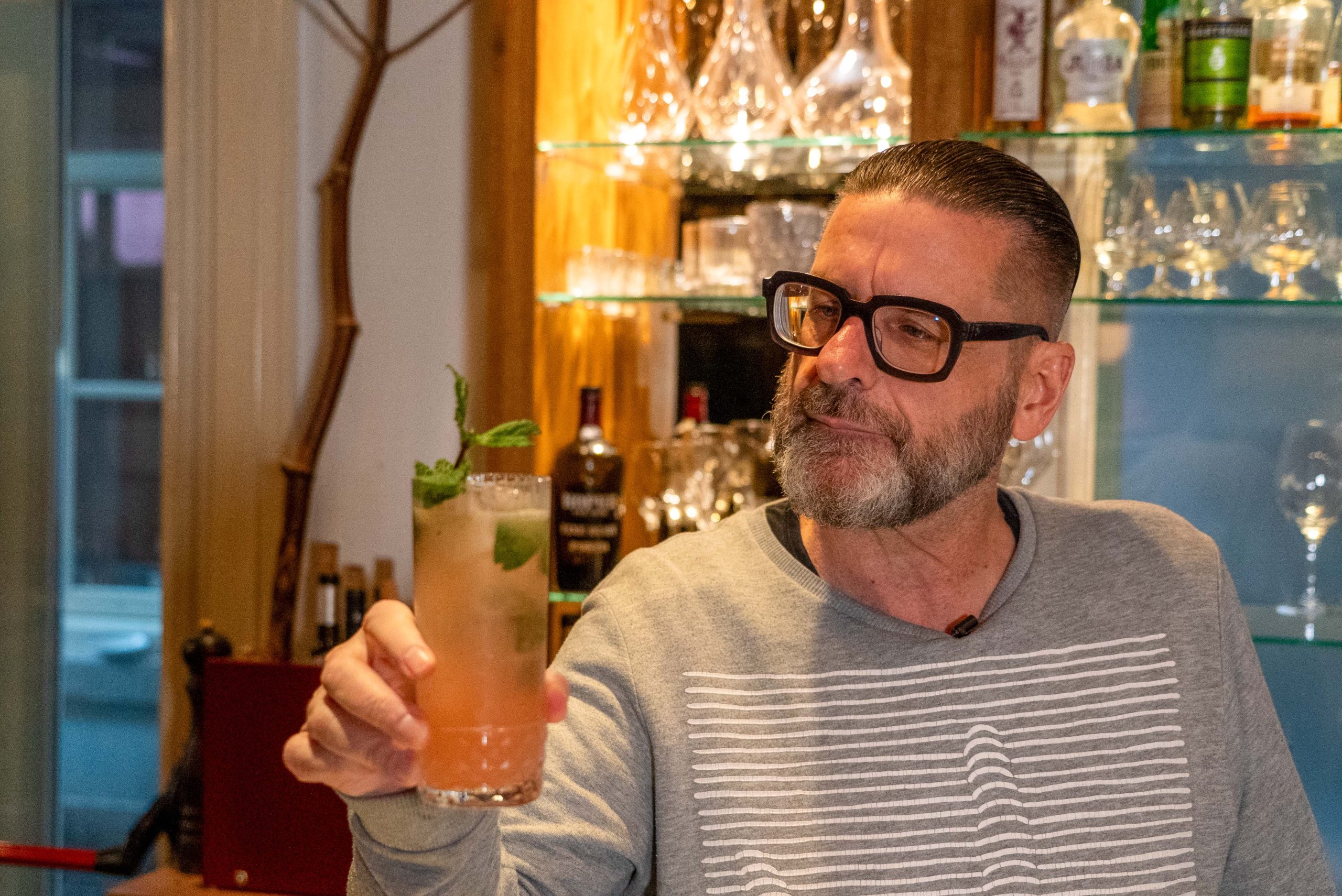 Een mocktail is vaak een samenvoeging van wat vruchtensappen. De Pink Pearl is dat niet. Het is een klassieker die wordt vermeld in verschillende officieel cocktail boeken. Jurgen van den Berg maakt hem aan de bar van Madeleine.